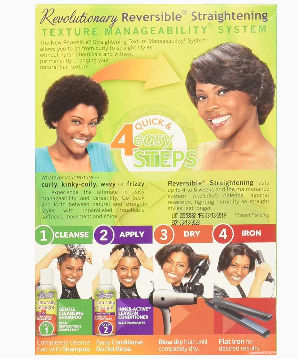 £6.49Description Naturally Straight Texture Manageability System allows you to go from curly to straight styles, without harsh chemicals and without permanently changing your natural hair texture. Go back and forth between natural and straight styles with unparalleled touchable softness, movement and shine. Reversible straightening lasts up to 4 to 6…