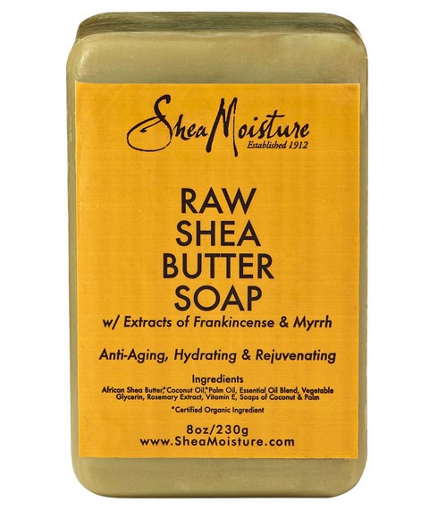 £5.69Raw Shea Butter Soap our deeply hydrating bar soap is specially formulated with organic Shea Butter to cleanse and deeply moisturize dry, rough skin. Healing Frankincense and Myrrh Extracts calm and revitalize dull looking skin while preventing early signs of aging. Leaves skin soft and youthful.