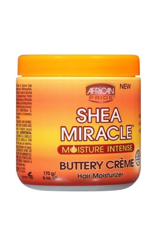 £3.99African Pride Shea Butter Miracle Buttery Creme 6oz Just like its title, this decadent crème is a dry curly girl’s best friend. It’s perfect to smooth through thirsty curls in need of some serious moisture. Use Buttery Crème to create silky two-strand twists by applying to hair while wet, brush…