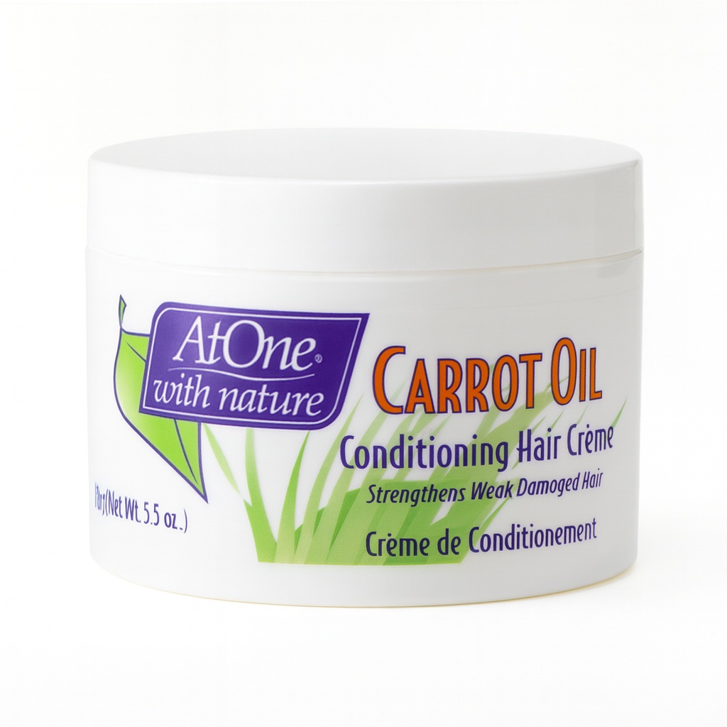 £5.49AtOne Carrot Oil Conditioning Creme strengthens weak, damaged hair and help to control hair breakage and shedding. Revives dry, natural or chemically treated hair with our moisture rich complex containing Beta Carotene, Vitamin E, Chamomile and Jojoba Oil. Massage a small amount throughout hair daily, style as usual.