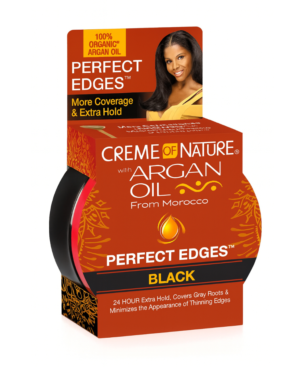 £4.99Creme of Nature’s Argan Oil from Morocco Perfect Edges Black. Infused with the nourishing properties of Moroccan argan oil and formulated specifically for black hair, this edge control gel provides maximum hold and definition for sleek and polished edges that complement your hairstyle.