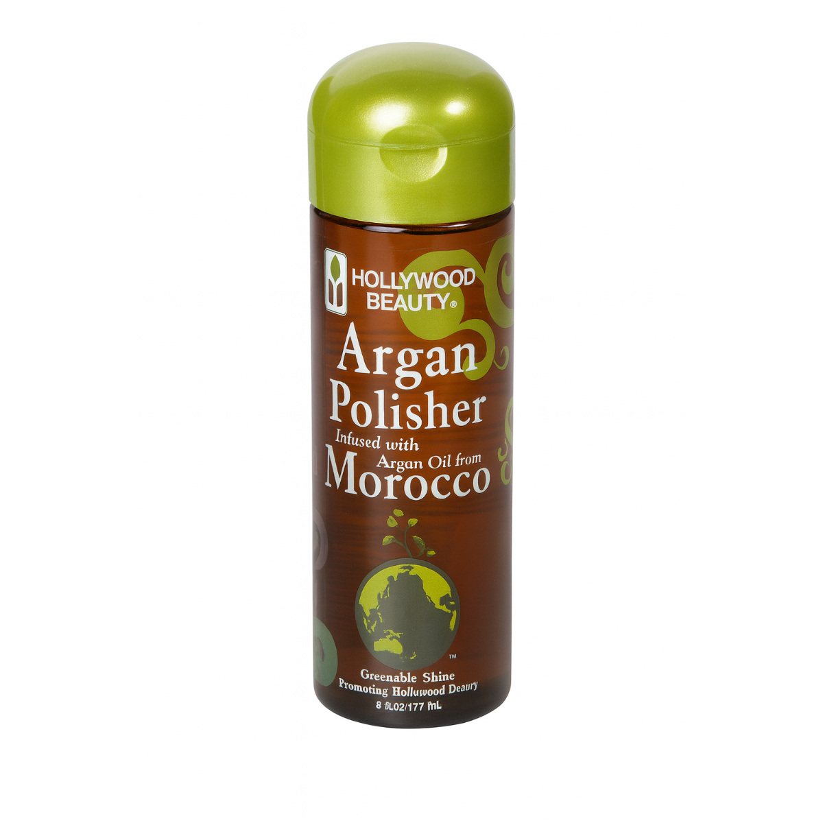 £7.99Description Hollywood Beauty Argan Polisher enriched with Argan Oil from Morocco. Calms frizz and adds moisture to dry, damaged hair as well as adds shine. Smoothes and conditions hair.