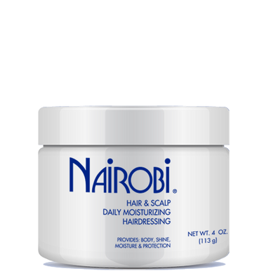 £15.99Nairobi Hair & Scalp Daily Moisturizing hairdressing provides body, shine, moisture, and protection to promote healthy growing hair. Softens & Moisturizes Vitamin enriched Light Non-greasy Excellent for children’s hair