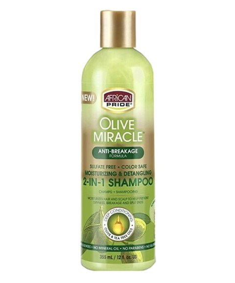 £3.49Our shampoo formula is a unique recipe combining the finest African miracle herbs, oils and natural ingredients to help repair, condition and rejuvenate dry, damaged hair as you shampoo. It cleans and moisturizes your hair, while restoring its natural body and shine. Now you can moisturize and revitalize your hair while you wash it with African Pride’s Olive Miracle® Moisturizing & Detangling Shampoo Formula.