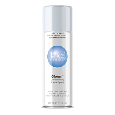 £23.99Nairobi Gleam Conditioning Sheen Spray is a crystal clear, hypoallergenic formula that adds glossy brilliance without adding weight. The ultra-fine mist will produce long-lasting shine to revitalize dull, dry hair. Perfect for any natural, relaxed, pressed and weaved style.
