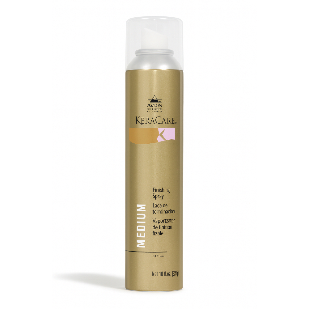 £8.99Avlon KeraCare Finishing Spray Medium Hold. Gives an all-day hold to finished styles. For moveable, touchable hair. Features 24 hour humidity shield. Dries fast. Does not flake. Sustains frizz-free styles. Adds a high shine to hair. Does not leave hair damp or wet. Light on hair.