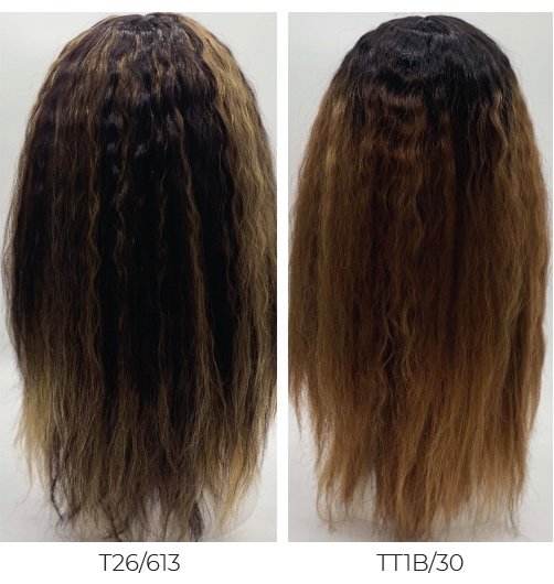 £49.99SPOTLIGHT PREMIUM HUMAN HAIR BLENDED LACE WIG A loose crimped style wig in this mid-length style. Length: 22” COLS: 1B, T2/27, TT1B/30, T26/613, TT2/27/30