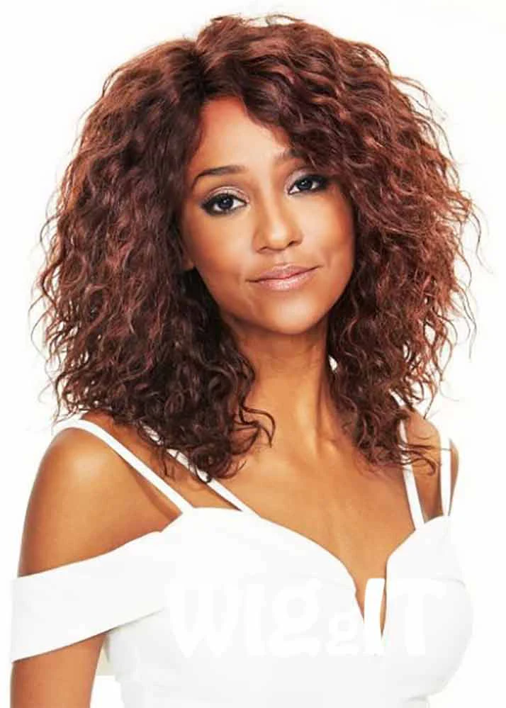 £44.99SPOTLIGHT PREMIUM HUMAN HAIR BLENDED LACE WIG A loose crimped curly style wig in this mid length style. With a lace front and centre parting this wig has a very natural finish. Length: 16” COLS: 1B, T27/613, TT1B/4/30