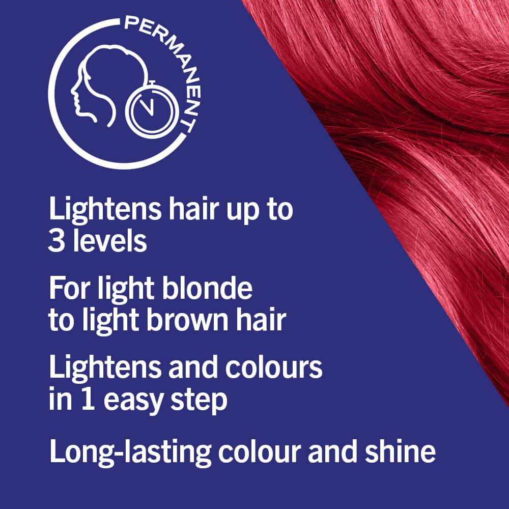 LIVE Colour + Lift Deep Coral L77 is a permanent vegan formula hair dye designed for light blonde to light brown hair that lightens and colours hair in one simple step. The formula lightens hair up to 3 levels and contains a highly concentrated pigment-mix which penetrates deeply into the hair for a long-lasting, radiant colour with brilliant shine.