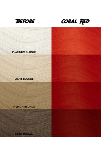 Our Coral Red hair dye is a truly unique shade that combines orange and pinky red tones to create bold, blended colour.?This semi-permanent hair dye?was a part of our original Crazy Color collection from 1977 and has remained a popular choice to this day. Some colours never go out of style!? ?If you want the best, boldest results from our Coral hair dye, you will want to use our High-Lift Bleach Kit?to lighten your hair to level 9 or 10 (blonde) before use. It is also suitable for level 8 (light brown) hair, but the results will be tonal. ?Coral Red is a truly unique shade that combines orange and pinky red. This semi-permanent hair dye was a part of our Original lineup from 1977 and it has stood the test of time. For the best results, we recommend lightening your hair to level 9 or 10 (blonde) before use. It is also suitable for level 8 (light brown) hair but the results will be tonal.?Just like all of our semi-permanent colours, our Coral hair dye is 100% vegan and cruelty-free. We don?t believe there?s any need to hurt animals to get great beauty products, and we love that our vegan formulas can provide lots of natural nourishment for the hair.??Need some orange hair inspo? We tell you how to get everything and anything from copper hair to fiery orange hair to ?dark and stormy? balayage in our orange hair ideas?blog post.??Our Bottles are 100ml
