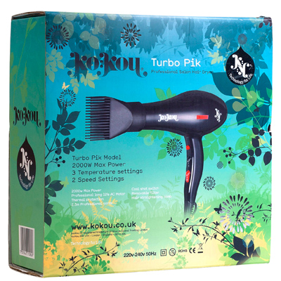 Ionic Turbo combines innovative design and production, resulting in high salon quality hair dryer for every day use. Contains a pik and a comb.